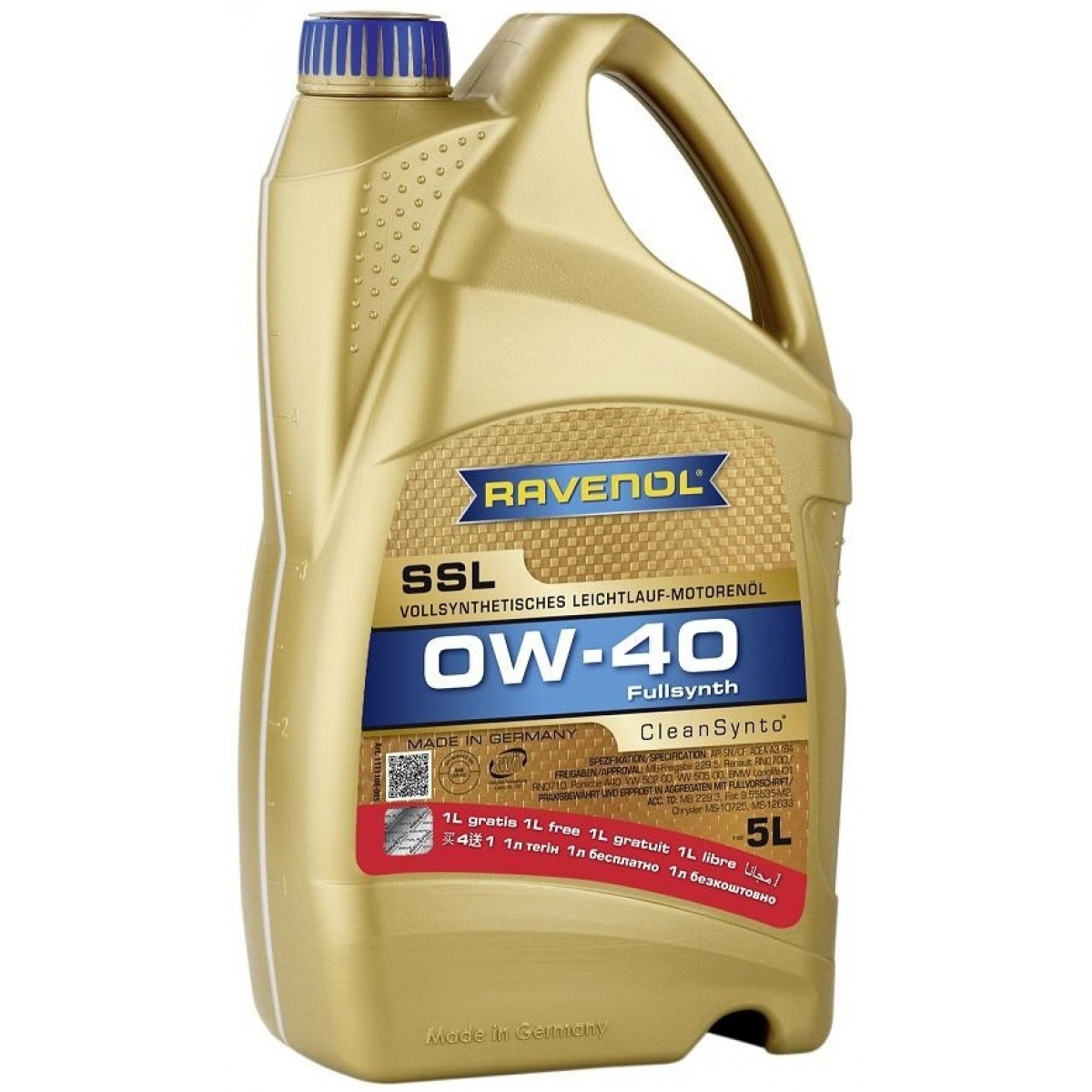 Моторное масло RAVENOL SSL SN/CF Fullsynth USVO 0W40 5л АКЦИЯ!!! 4+1